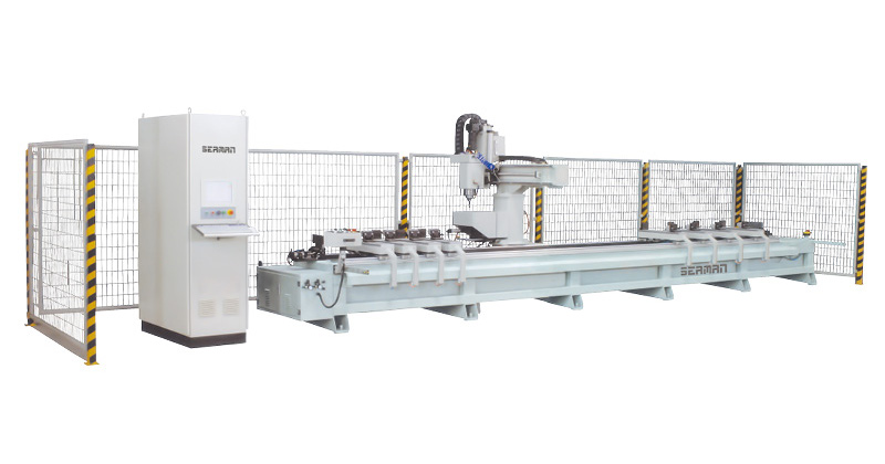 我公司為適應(yīng)軌道交通鋁型材和各種工業(yè)鋁材的加工,專門開發(fā)設(shè)計的一款高檔機(jī)、電、氣一體化設(shè)備。該型加工中心剛性足、速度快,主軸具有轉(zhuǎn)速高和低速較大扭矩的特點,具有很高的加工效率,并且根據(jù)軌道交通鋁型材的特點做了適應(yīng)性的特殊設(shè)計,使得該型設(shè)備可以較好的滿足軌道交通鋁型材各種長度工件的高效加工。在軌道交通行業(yè),該類型設(shè)備現(xiàn)在已經(jīng)拓展成為系列產(chǎn)品,該型號設(shè)備是主要產(chǎn)品之一。